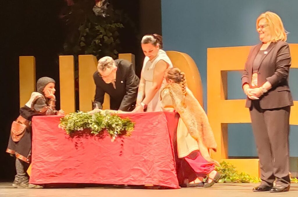 Josep Lluís Gàzquez Pons, president de l’Associació de la Festa de Moros i Cristians de Lleida va assistir diumenge 8 de febrer a l’acte institucional del 50è aniversari de la fundació de la Unió Nacional d’Entitats Festeres (UNDEF) que es va celebrar al teatre Rio de la localitat alacantina d’Ibi. El president de la nostra entitat va signar en el llibre d’or de la UNDEF tot reafirmant el nostre compromís fester.